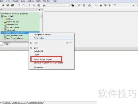 6、 可先将该DSP项设为活动状态再进行编译,设置方式所示,只需右键点击并选择设为活动项目即可完成操作。