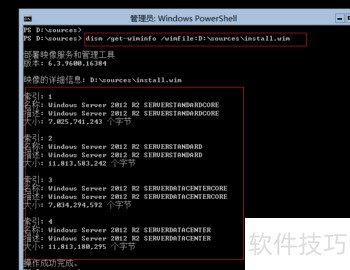 8、 图像索引1和3对应服务器核心安装版本,分别为标准版和数据中心版;索引2和4则为带图形界面的标准版与数据中心版安装映像。