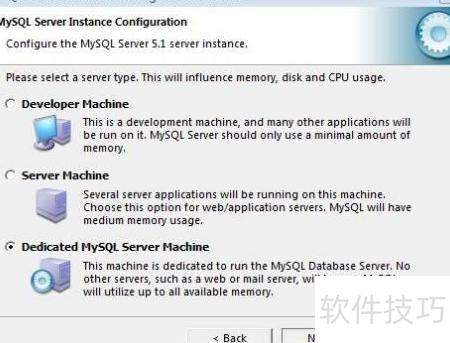 24、 根据使用场景选择合适的服务器类型:若用于开发测试,可选开发测试类,MySQL资源占用较低;若为综合型服务器应用,建议选择服务器类型,MySQL将占用较多系统资源;若为专用数据库服务器,则应选择专门的数据库服务器,此时MySQL将充分利用全部可用资源,以达到最佳性能表现。