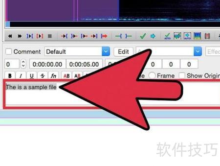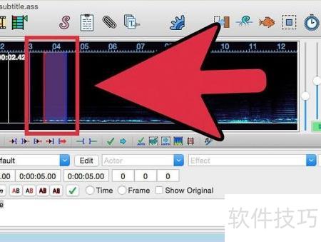 6、 选择文本在视频中的显示区域。音频窗口内包含两个标记框,红色代表文本开始显示的时间点,蓝色则表示文本结束的位置。将鼠标左键按住红色框并拖动至波形起始处,再将蓝色框拖动至波形结尾位置,即可完成文本显示时段的设定。
