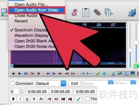 2、 从视频中提取配乐,点击音频菜单中的从视频打开音频选项,系统会自动将音轨分离并导入Aegisub。具体耗时取决于视频文件的大小和时长,处理过程可能需要几分钟到更久不等。