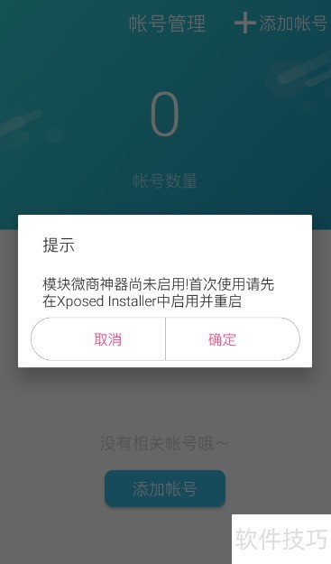 4、 打开任意营销软件时,系统会弹出Xposed安装器启用提示,只需点击确认即可完成操作。