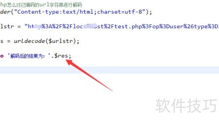 8、 调用urldecode()函数解码URL字符串,并将结果存入\$res变量。