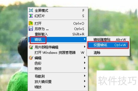 将图片设为桌面背景,使用FastStone Image Viewer,按以下步骤操作即可完成设置。