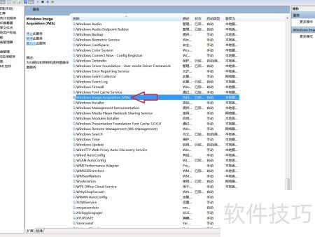 4、 在右侧列表中定位到 Windows Image Acquisition 选项(所示)。