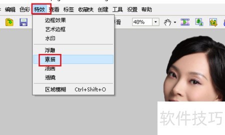 2、 点击特效,选择素描效果。