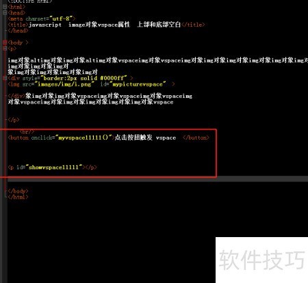 8、 获取vspace属性值,并将其内容显示在p标签内。