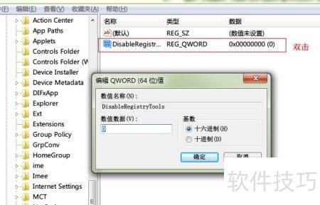 4、 新建一个32位DWORD值,命名为DisableRegistryTools,随后双击此值进行设置。
