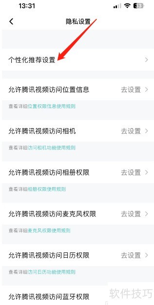2、 进入隐私设置,选择个性化推荐进行管理操作。
