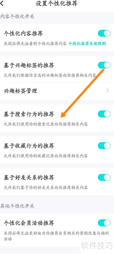 5、 开启基于搜索的个性化推荐功能。