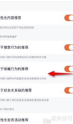 4、 向左滑动收藏推荐的开关按钮,完成操作后即可关闭该推荐功能。