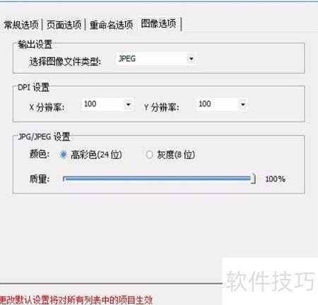 8、 在常规选项里可设定文件保存路径及密码保护等参数;进入页面选项后,能够调整页面范围、缩放比例以及自定义图像尺寸等内容;切换至重命名选项时,建议修改输出文件名称,尤其应删除文件名末尾多余的数字0,避免转换后的每张图片都带有冗余数字,影响美观;最后在图像选项中,可选择图像格式如JPEG,并设置分辨率高低,颜色模式推荐选用高彩色(24位),图像质量可设为100%,以获得更清晰的输出效果。所有参数配置完毕后,确认无误即可点击确定执行转换操作。合理设置各项参数,有助于提升转换效率与图像品质,满足不同使用需求。