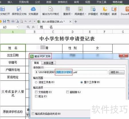 2、 点击输出为PDF格式可对文件进行命名操作。