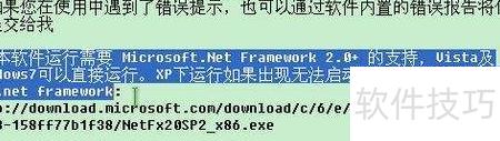 3、 展开后才明白,原来我们用的是XP系统。提示信息显示:本软件需 Microsoft .NET Framework 2.0 或更高版本支持,Vista 和 Windows 7 用户可直接运行。若在XP系统中无法启动,请先下载并安装 .NET Framework 2.0 以上版本。既然如此,解决方法也很简单,只需打开浏览器,在百度上搜索相关安装包即可轻松完成安装,问题迎刃而解。