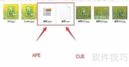 4、 打开存储APE格式文件的文件夹,找到扩展名为APE和CUE的两个文件。其中CUE是索引文件,必不可少,若缺少该文件,整张CD将无法分轨播放,只能作为单个音频连续播放,失去分段播放的功能。