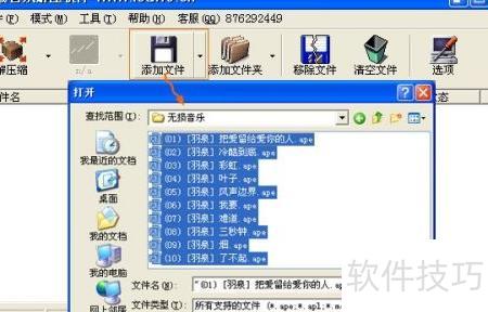 2、 点击添加文件或添加文件夹,选中要解压转换的APE无损音乐文件即可。