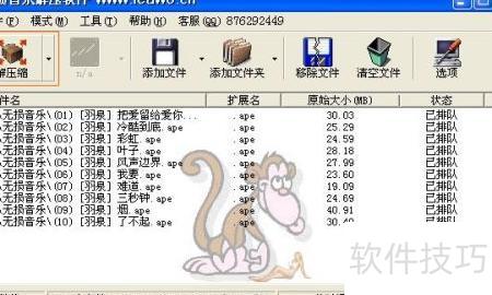 3、 导入APE音乐文件后,点击工具栏左侧解压缩按钮即可开始解压,该软件支持批量处理多个文件。