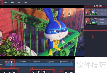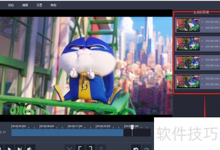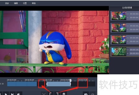 7、 使用裁剪工具时,移动控制杆至所需位置,通过该工具可将视频分割为两段,快捷键为Ctrl+S。