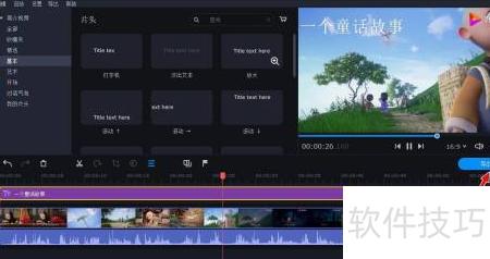 15、 将简单文本字幕模板用鼠标拖至文本轨道编辑区域。
