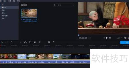 13、 将媒体区的视频用鼠标拖至视频轨道编辑区域。