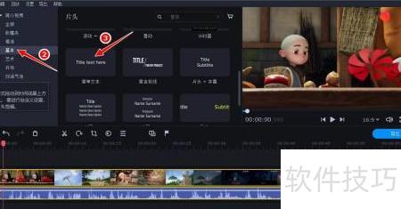 14、 点击片头图标,进入基本菜单,挑选简单文本等字幕样式模板进行应用。