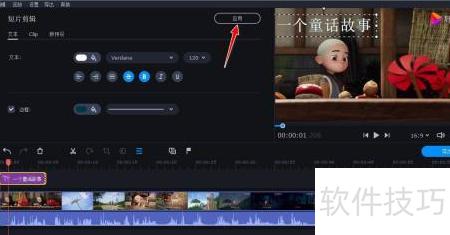 16、 双击文本轨道中的字幕组件,修改文字内容并调整样式,最后点击应用按钮确认更改。