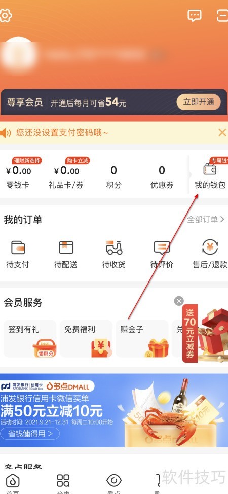 、 打开多点,点击进入个人页面。