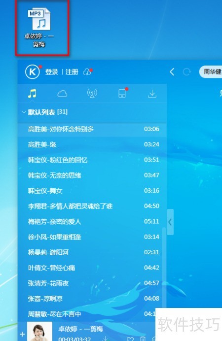 1、 双击歌曲文件后,默认会使用Windows Media Player进行播放。