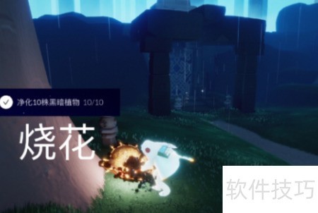 1、 进入光遇,按图示净化十株黑暗植物即可。
