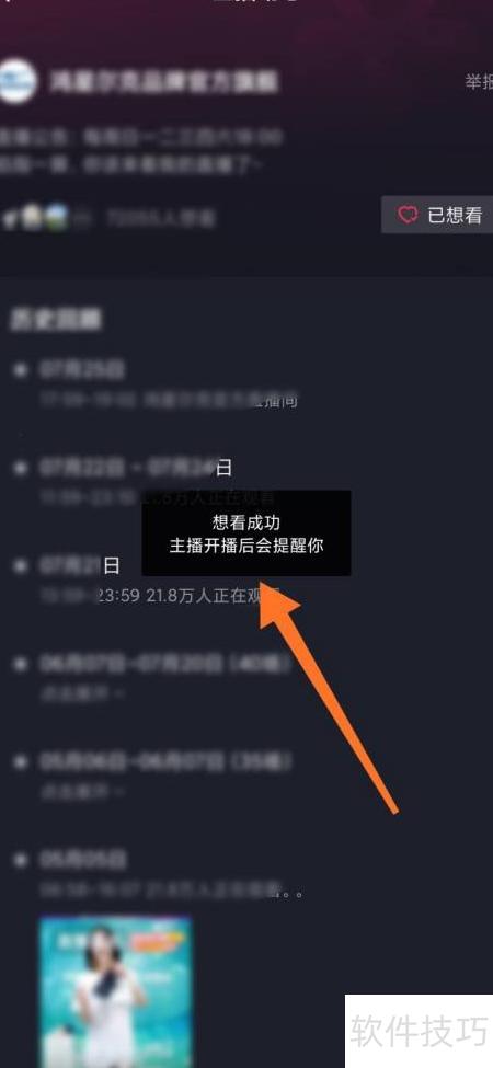 4、 直播动态页点击想看按钮。