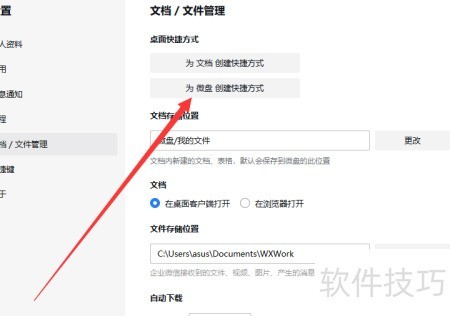 6、 进入文件管理,点击顶部设置,选择创建微盘快捷方式即可完成。
