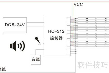 17、 将控制器安装于合适位置,并连接电源。根据LED灯的供电需求选择5V至24V范围内的电源电压,也可采用双电源供电,但需确保两个电源共地,以保证系统稳定运行。