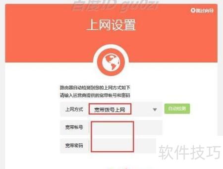 4、 检测完成后,输入运营商提供的宽带账号及密码即可。