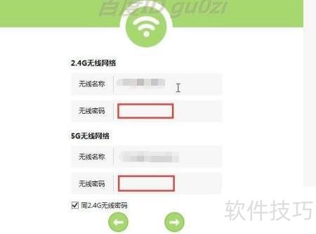 5、 在双频无线网络安全设置中,建议为5G网络名称添加5G标识以便区分,其余部分可与2.4G网络保持一致。若希望使用相同密码,可保留默认勾选的同2.4G无线密码选项。