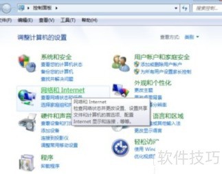2、 点击开始菜单,进入控制面板,在打开的窗口中选择网络和Internet进行相关设置操作。