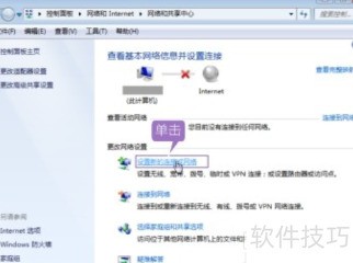6、 打开网络和共享中心,点击设置新的连接或网络。