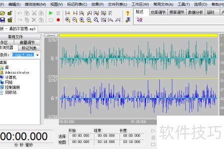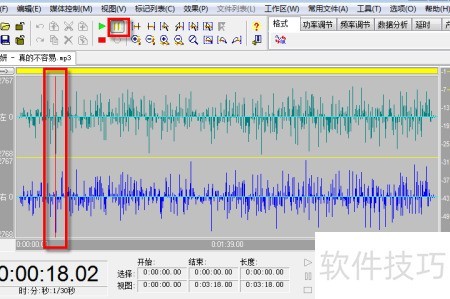 11、 点击工具栏绿色播放键开始播放音频,到达设为铃声起始位置时,按下空格键暂停。