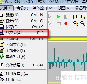 18、 试听完成后,点击文件菜单中的另存为,选择MP3格式保存即可。