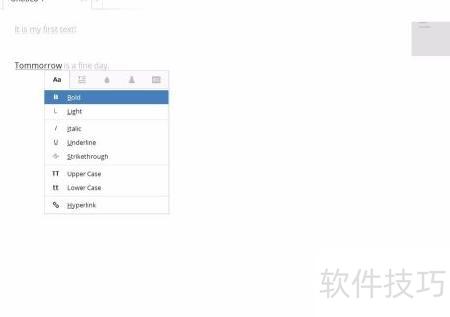 5、 输入文字后,右键可调出格式菜单,支持修改格式、字体、颜色,以及搜索链接和拼写检查。注意将拼写检查设置为自己的语言,避免出现烦人的红色波浪线。