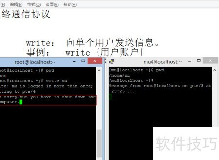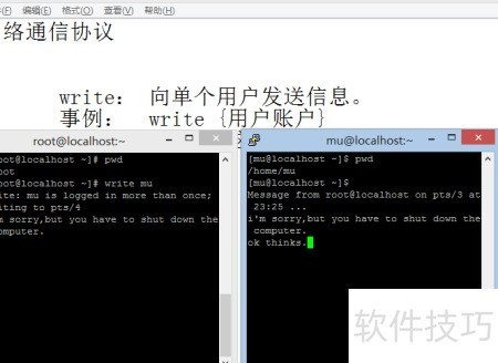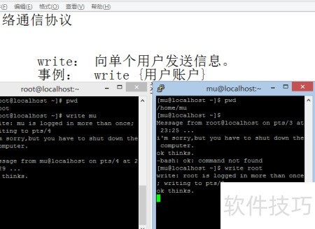 1、 需明确一个基本概念:write命令仅支持向单一用户发送信息,实现点对点通信。