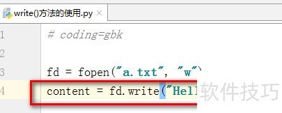 1、 创建名为 write()方法的使用.py 的文件,操作示。