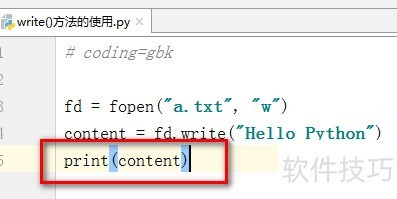 6、 调用 write() 函数后,将其返回值通过 print() 函数输出显示。