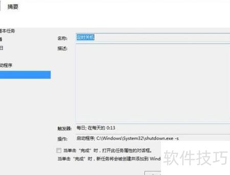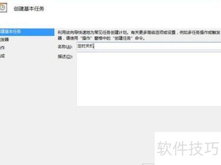 5、 在名称处填写定时关机,点击下一步继续操作。