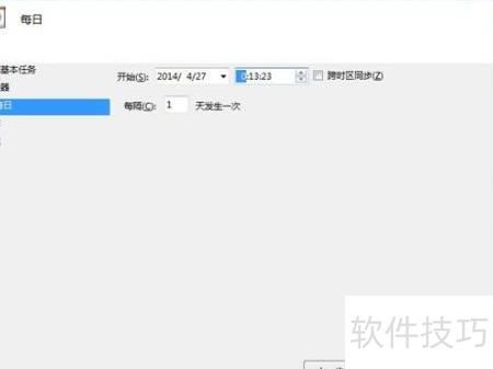 6、 在创建基本任务向导中选择触发器,通常设定为每天,点击下一步,随后在时间栏中输入计划关机的具体时间。