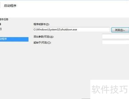 7、 点击下一步进入操作界面,选择启动程序后继续点击下一步,在程序或脚本栏中输入C:WindowsSystem32shutdown.exe。