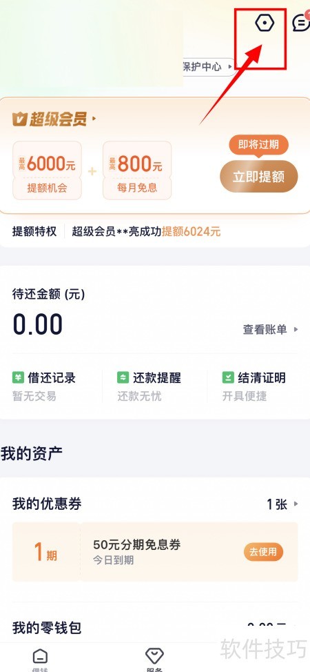 1、 打开360借条应用,点击选项即可进入相关页面。