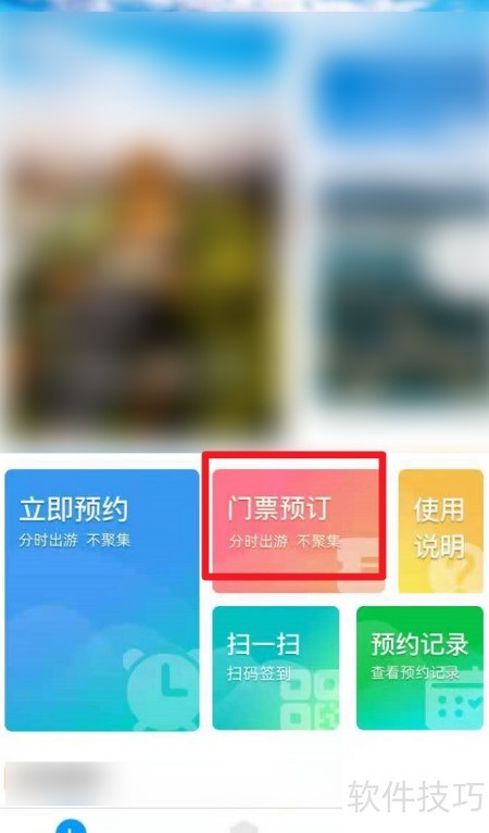 5、 进入分时预约页面,点击中部菜单的门票预订即可完成购票。