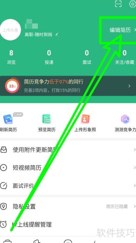 1、 打开汇博招聘,点击编辑简历即可。