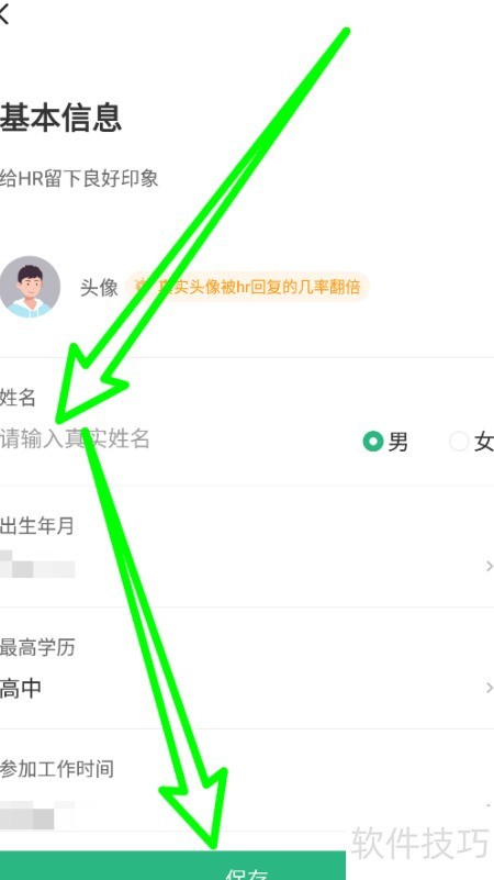 3、 输入姓名后点击保存即可完成