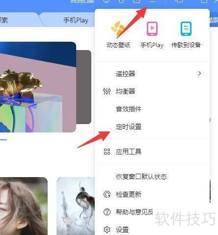 1、 打开酷狗音乐,进入主菜单,选择定时设置功能,操作所示。